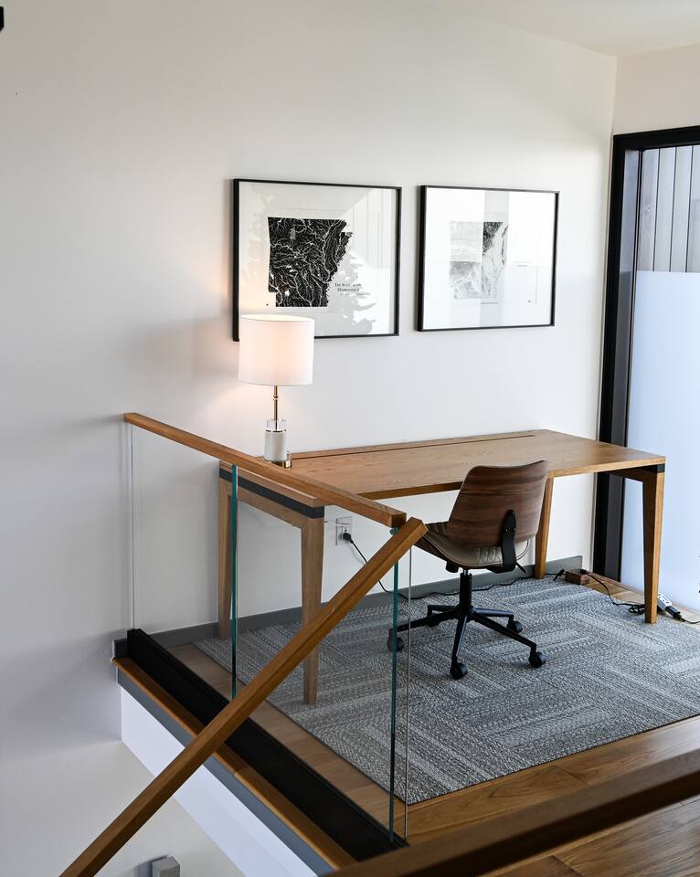 Welcome to Bike House 3—a brand-new, architect-designed 6-bedroom, 6.5-bathroom luxury home available starting August 1st. Located directly on the Slaughter Pen Mountain Bike Trails and just steps from Crystal Bridges Museum, this home offers the closest possible access to Bentonville’s most iconic outdoor and cultural landmarks. With a thoughtful three-part layout and large windows facing the park, trails, and museum, this home is designed to immerse you in nature while providing high-end comfort and privacy for groups, families, or corporate retreats. Main Level: The main house features a full kitchen with island seating, dining area, and living room with an 85" TV. The master suite includes a king bed, private patio access, large windows with park and trail views, and a second 85" TV. Patio doors lead to a covered porch with a hot tub, gas fire pit, grill, dining area, and seating—perfect for relaxing or watching mountain bikers go by. Second Floor: Upstairs includes two bedrooms with king beds, three full bathrooms, and a private living room ideal for separate gatherings. Expansive windows offer seasonal views of Crystal Bridges Museum, the flyover bike bridges, and surrounding trail network. Studio Wing: The Studio Wing is a private retreat with 20-foot ceiling, 18-foot-tall windows, and modern finishes throughout. It includes 2 bedrooms with king beds, loft with 2 twin beds, 2 full bathrooms, a private kitchen, living room, game room, and a spacious basement-level lounge. Ideal for a second family or group, the Studio Wing offers privacy while staying fully connected to the main house. Garage: The home features an oversized 2-car garage with plenty of space for larger vehicles, plus a unique 1-car garage with a glass door that opens onto the deck and park. This flexible space is perfect for entertaining, storing bikes, or setting up games and gatherings with a view. Orientation & Views: The home is positioned to capture views of Boo Boo Trail, the Razorback Greenway, and the north end of Crystal Bridges. Whether inside or outside, you'll enjoy a front-row seat to Bentonville’s trail system, natural beauty, and vibrant biking culture.
