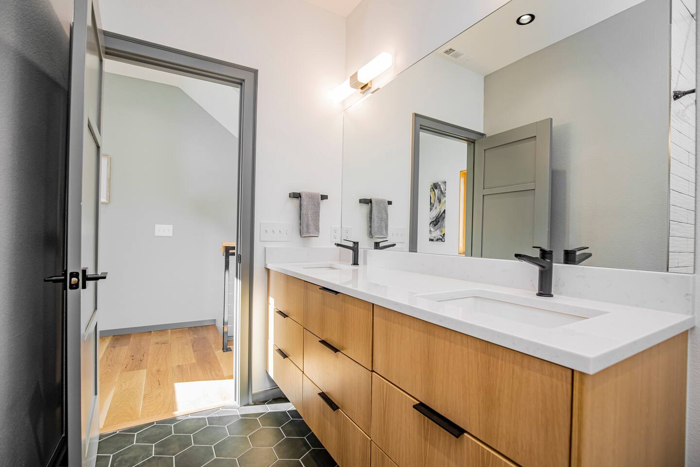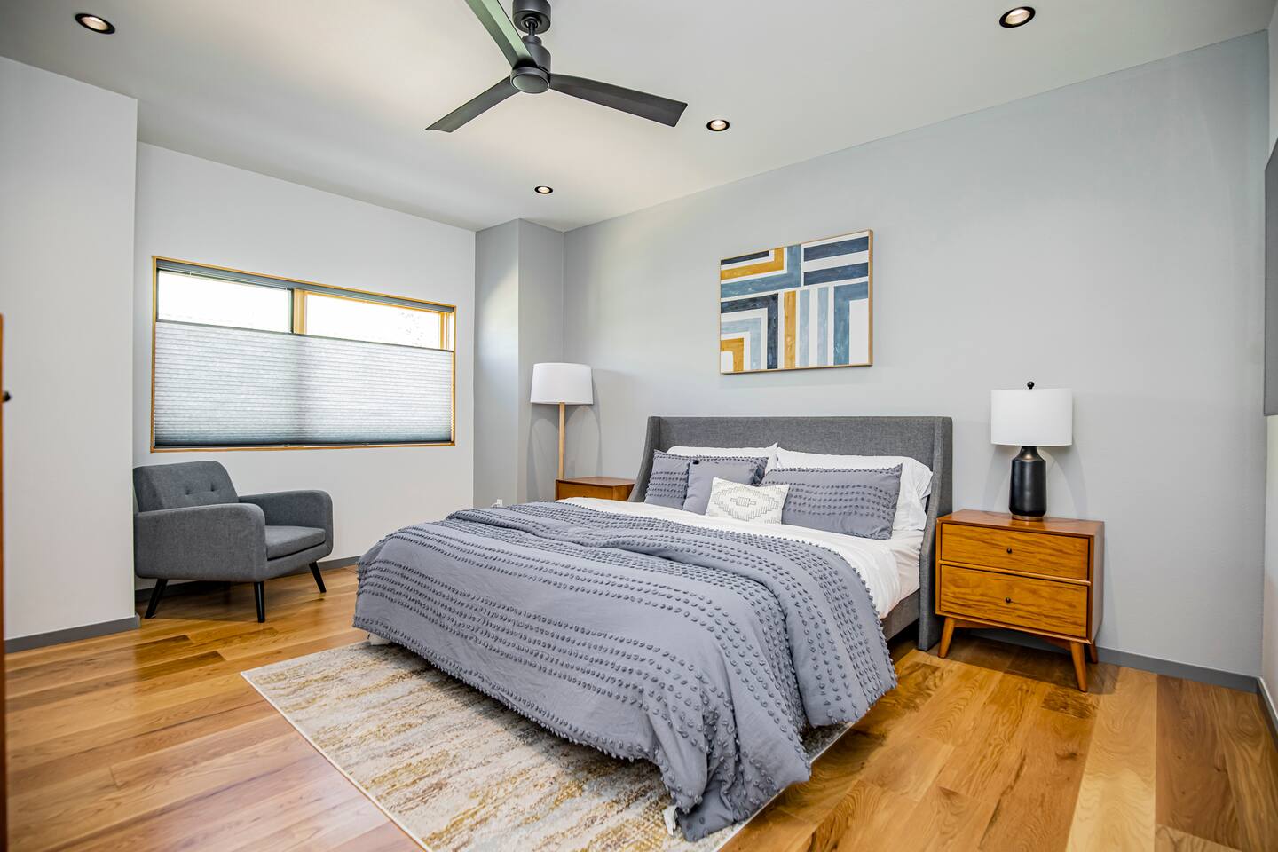 Enjoy a stylish experience at this centrally-located town home. 3 minute bike or car ride to Square, restaurants, shopping and main MTB trailhead or 6 minute walk to The Momentary. Self check-in - smart locks 2 bedroom | 2 bathroom 1 king bed and 1 queen bed Fully stocked kitchen with high-end appliances W & D WIFI 80 in. 4K TV/ living room 55 in. 4K TV/ master BR Private parking lot in rear Designated on street public parking on SE 7th Bike clean off area