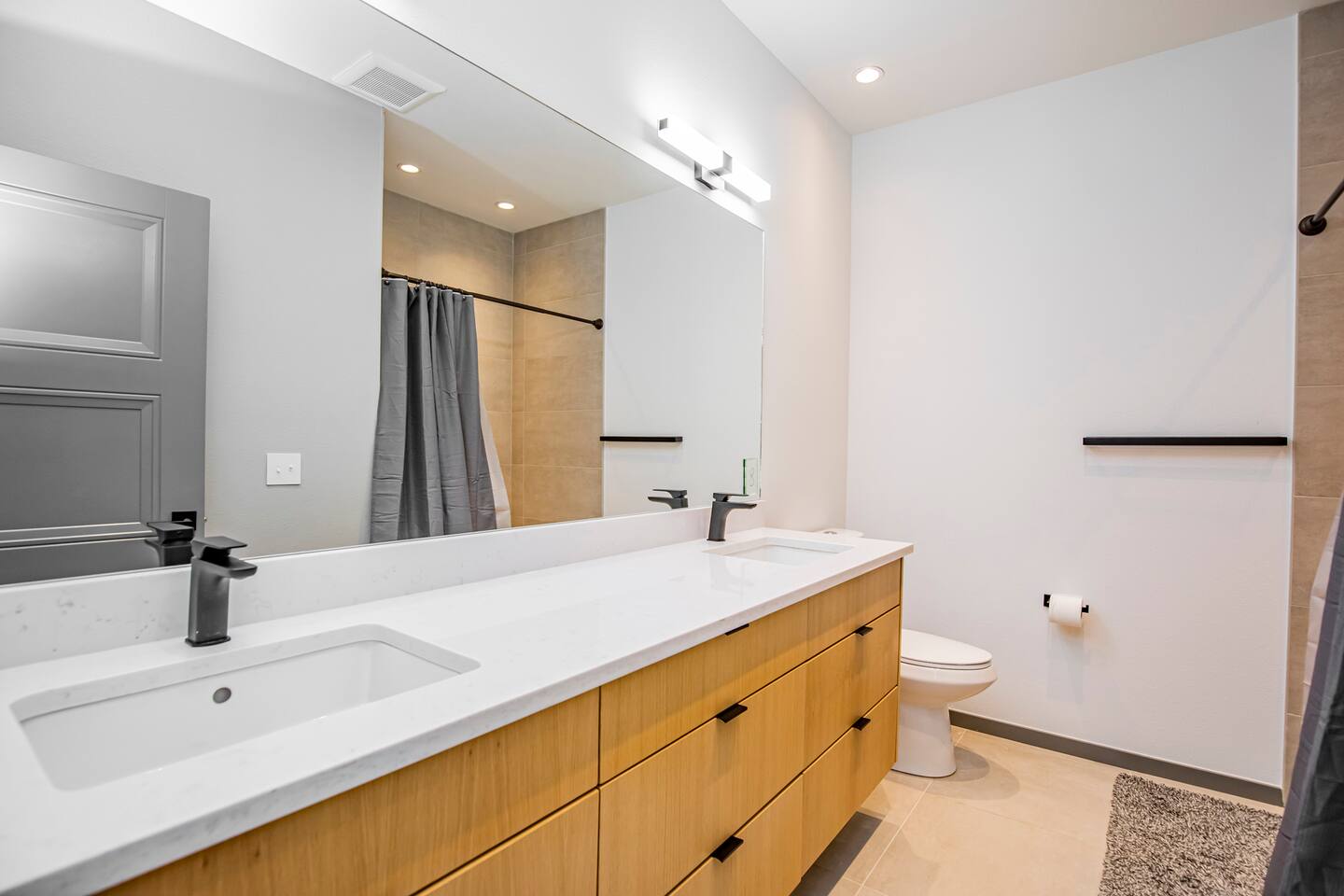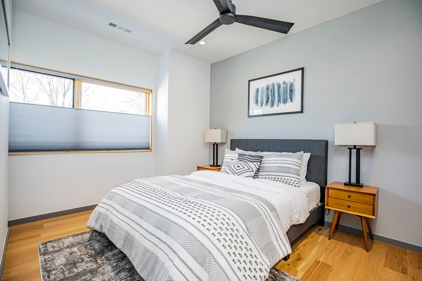 Enjoy a stylish experience at this centrally-located townhome. 3 minute bike or car ride to Square, restaurants, shopping and main MTB trailhead or 6 minute walk to The Momentary. Self check-in - smart locks 2 bedroom | 2 bathroom 1 king bed and 1 queen bed Fully stocked kitchen with high-end appliances W & D WIFI 80 in. 4K TV/ living room 55 in. 4K TV/ master BR Private parking lot in rear Designated on street public parking on SE 7th Bike hose off area