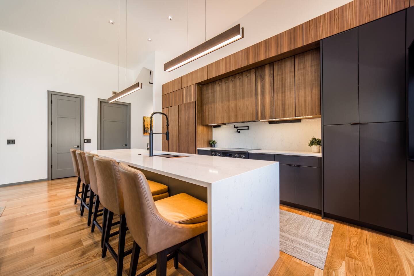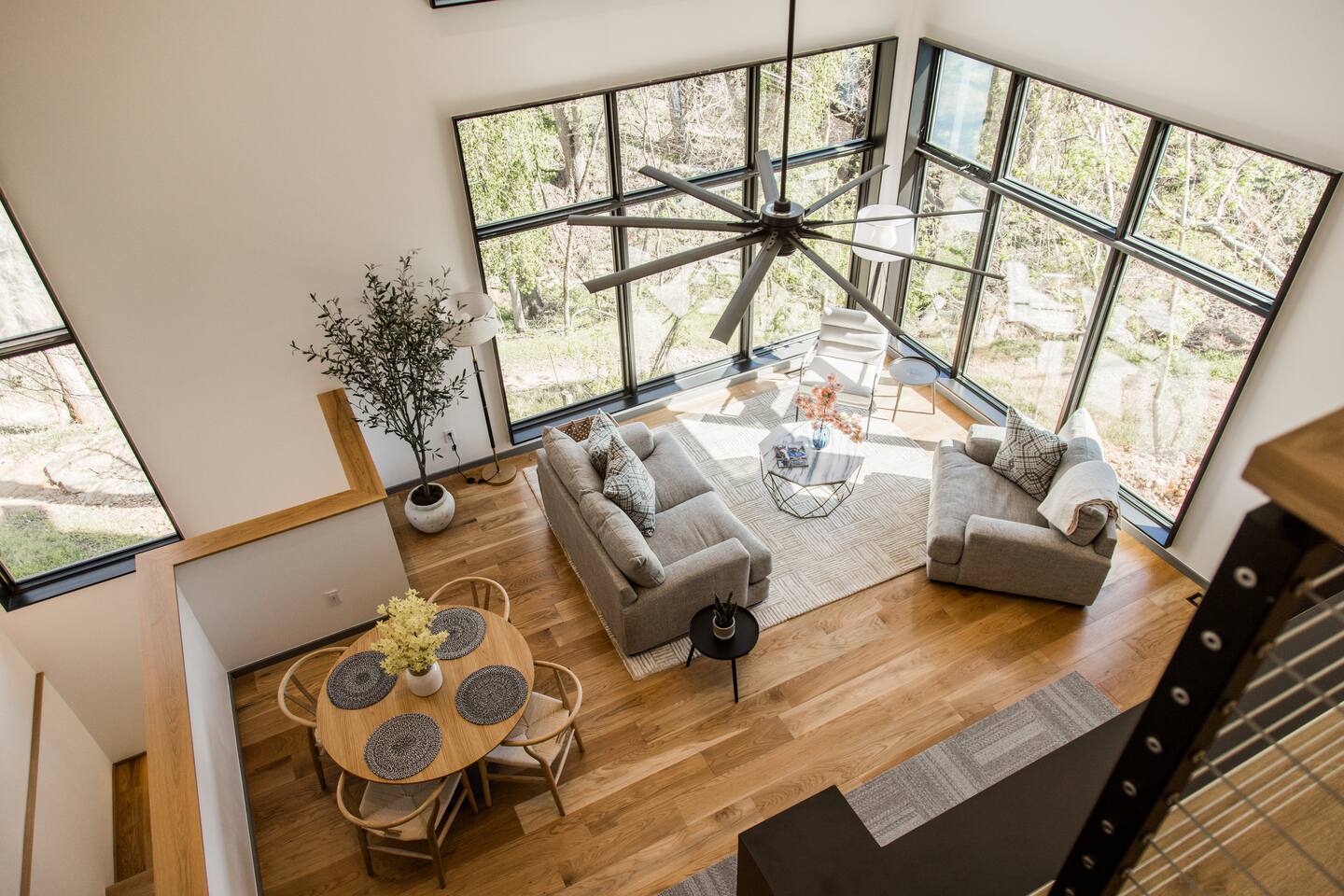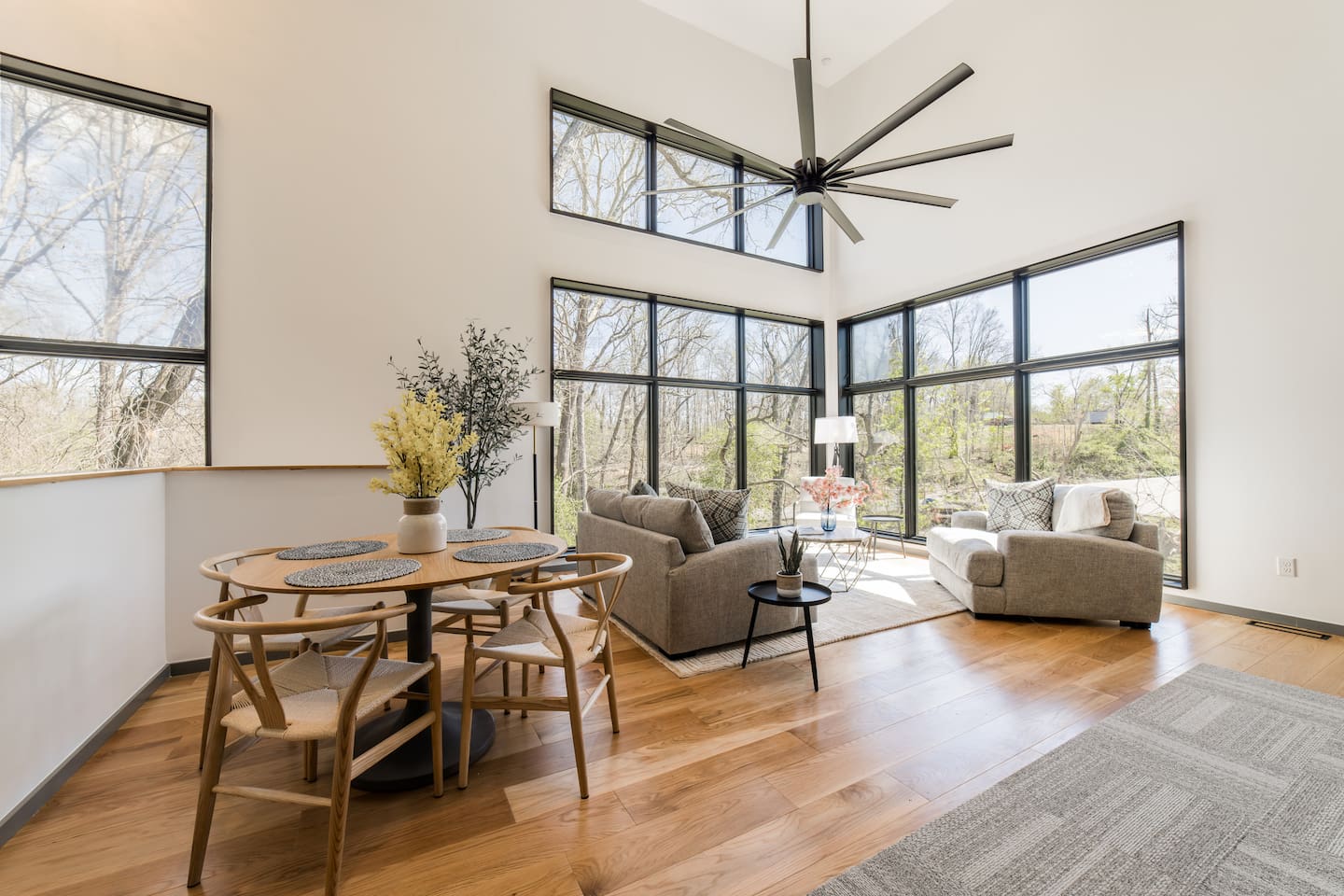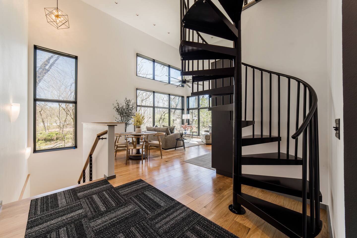 Welcome to Bike House 3—a brand-new, architect-designed 6-bedroom, 6.5-bathroom luxury home available starting August 1st. Located directly on the Slaughter Pen Mountain Bike Trails and just steps from Crystal Bridges Museum, this home offers the closest possible access to Bentonville’s most iconic outdoor and cultural landmarks. With a thoughtful three-part layout and large windows facing the park, trails, and museum, this home is designed to immerse you in nature while providing high-end comfort and privacy for groups, families, or corporate retreats. Main Level: The main house features a full kitchen with island seating, dining area, and living room with an 85" TV. The master suite includes a king bed, private patio access, large windows with park and trail views, and a second 85" TV. Patio doors lead to a covered porch with a hot tub, gas fire pit, grill, dining area, and seating—perfect for relaxing or watching mountain bikers go by. Second Floor: Upstairs includes two bedrooms with king beds, three full bathrooms, and a private living room ideal for separate gatherings. Expansive windows offer seasonal views of Crystal Bridges Museum, the flyover bike bridges, and surrounding trail network. Studio Wing: The Studio Wing is a private retreat with 20-foot ceiling, 18-foot-tall windows, and modern finishes throughout. It includes 2 bedrooms with king beds, loft with 2 twin beds, 2 full bathrooms, a private kitchen, living room, game room, and a spacious basement-level lounge. Ideal for a second family or group, the Studio Wing offers privacy while staying fully connected to the main house. Garage: The home features an oversized 2-car garage with plenty of space for larger vehicles, plus a unique 1-car garage with a glass door that opens onto the deck and park. This flexible space is perfect for entertaining, storing bikes, or setting up games and gatherings with a view. Orientation & Views: The home is positioned to capture views of Boo Boo Trail, the Razorback Greenway, and the north end of Crystal Bridges. Whether inside or outside, you'll enjoy a front-row seat to Bentonville’s trail system, natural beauty, and vibrant biking culture.