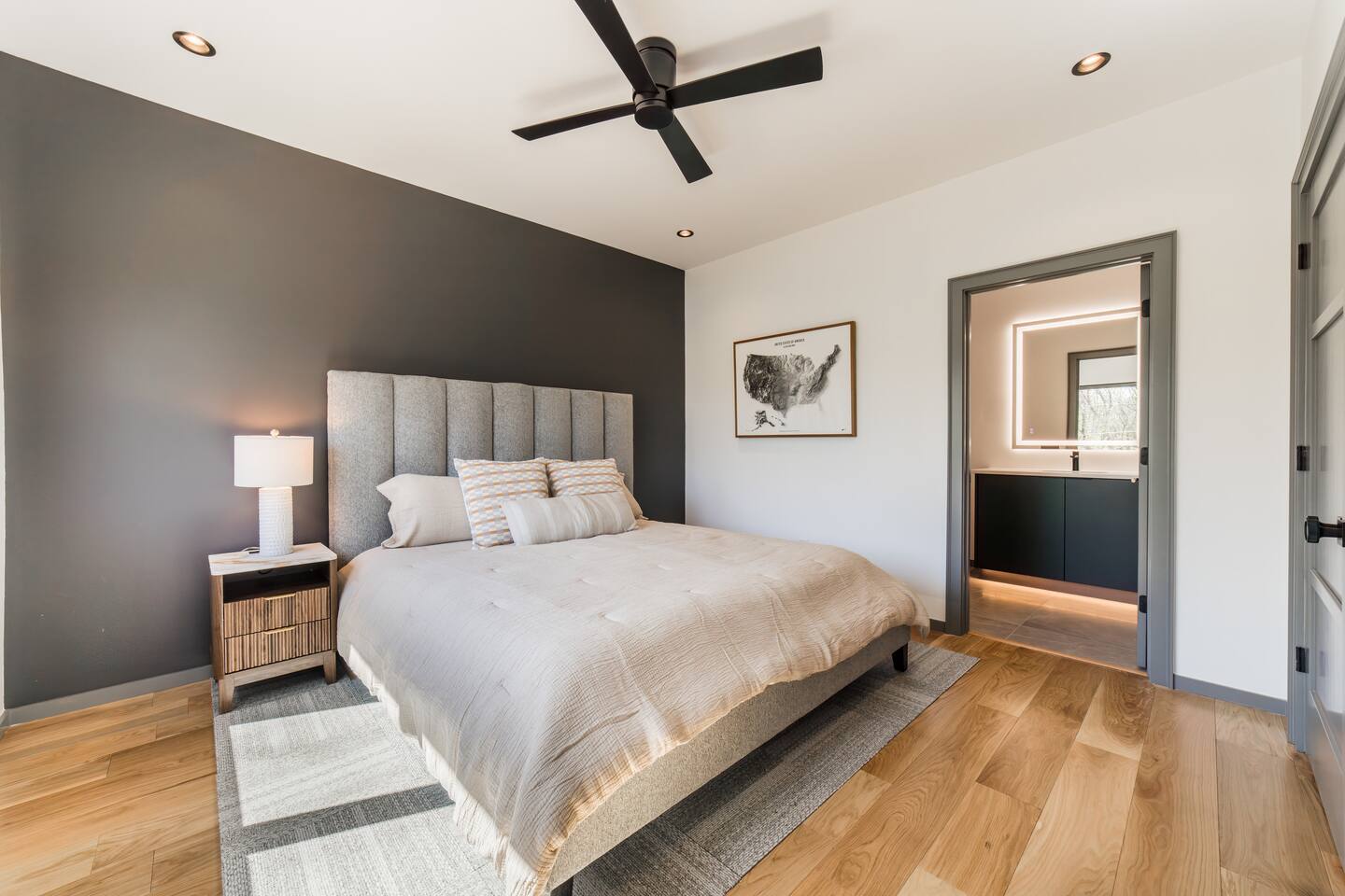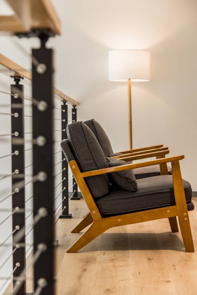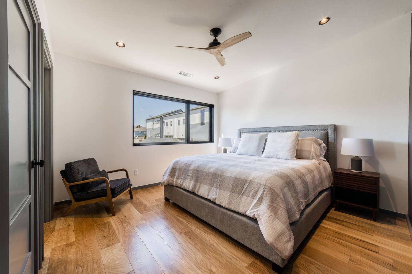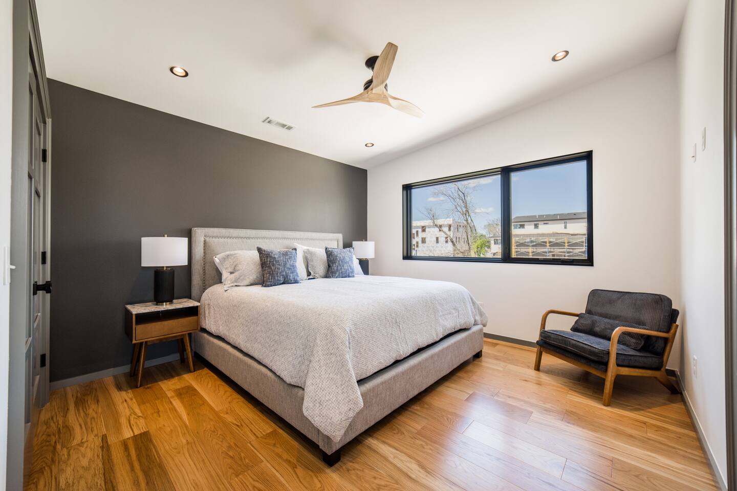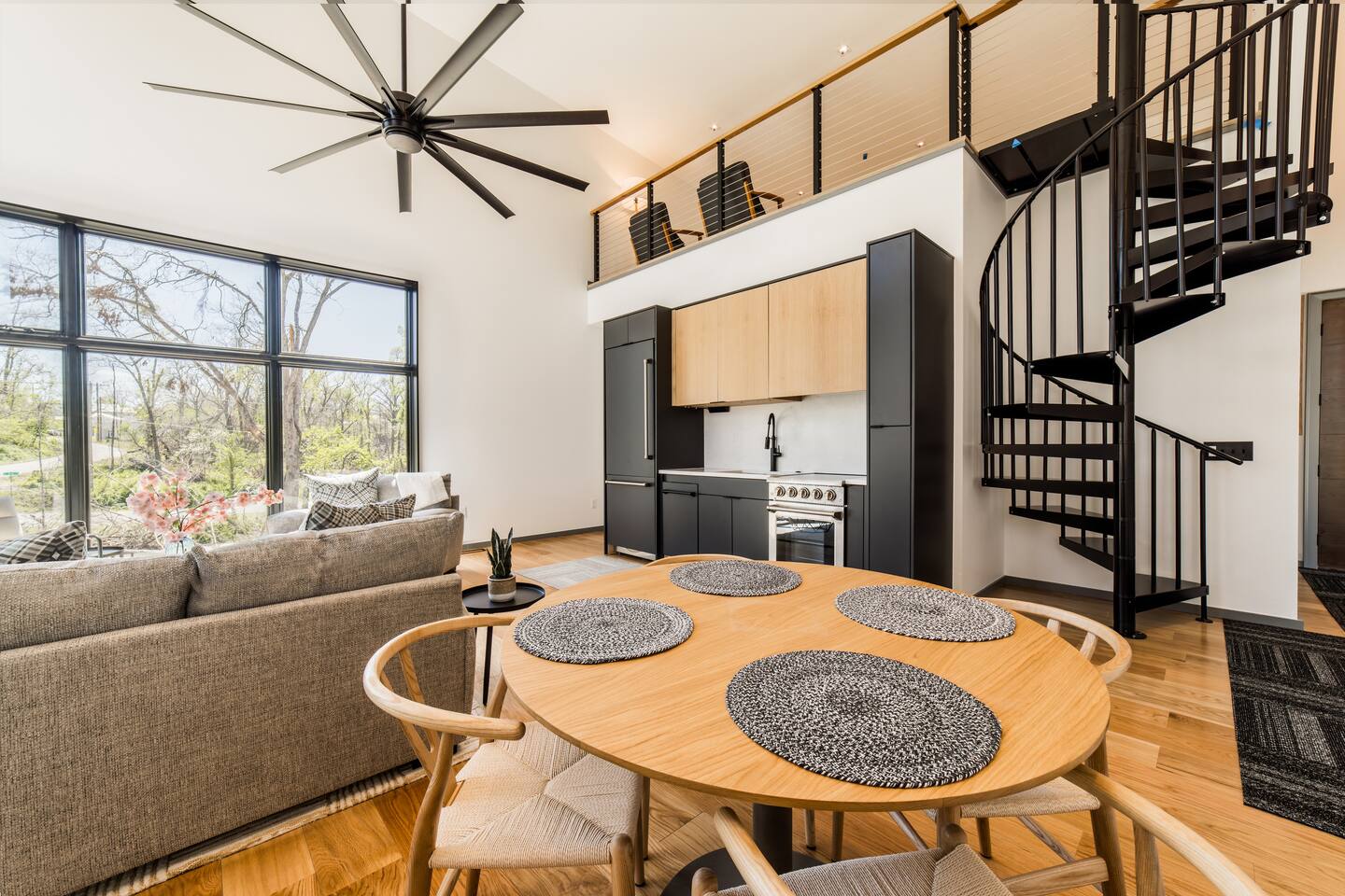 Welcome to Bike House 3—a brand-new, architect-designed 6-bedroom, 6.5-bathroom luxury home available starting August 1st. Located directly on the Slaughter Pen Mountain Bike Trails and just steps from Crystal Bridges Museum, this home offers the closest possible access to Bentonville’s most iconic outdoor and cultural landmarks. With a thoughtful three-part layout and large windows facing the park, trails, and museum, this home is designed to immerse you in nature while providing high-end comfort and privacy for groups, families, or corporate retreats. Main Level: The main house features a full kitchen with island seating, dining area, and living room with an 85" TV. The master suite includes a king bed, private patio access, large windows with park and trail views, and a second 85" TV. Patio doors lead to a covered porch with a hot tub, gas fire pit, grill, dining area, and seating—perfect for relaxing or watching mountain bikers go by. Second Floor: Upstairs includes two bedrooms with king beds, three full bathrooms, and a private living room ideal for separate gatherings. Expansive windows offer seasonal views of Crystal Bridges Museum, the flyover bike bridges, and surrounding trail network. Studio Wing: The Studio Wing is a private retreat with 20-foot ceiling, 18-foot-tall windows, and modern finishes throughout. It includes 2 bedrooms with king beds, loft with 2 twin beds, 2 full bathrooms, a private kitchen, living room, game room, and a spacious basement-level lounge. Ideal for a second family or group, the Studio Wing offers privacy while staying fully connected to the main house. Garage: The home features an oversized 2-car garage with plenty of space for larger vehicles, plus a unique 1-car garage with a glass door that opens onto the deck and park. This flexible space is perfect for entertaining, storing bikes, or setting up games and gatherings with a view. Orientation & Views: The home is positioned to capture views of Boo Boo Trail, the Razorback Greenway, and the north end of Crystal Bridges. Whether inside or outside, you'll enjoy a front-row seat to Bentonville’s trail system, natural beauty, and vibrant biking culture.