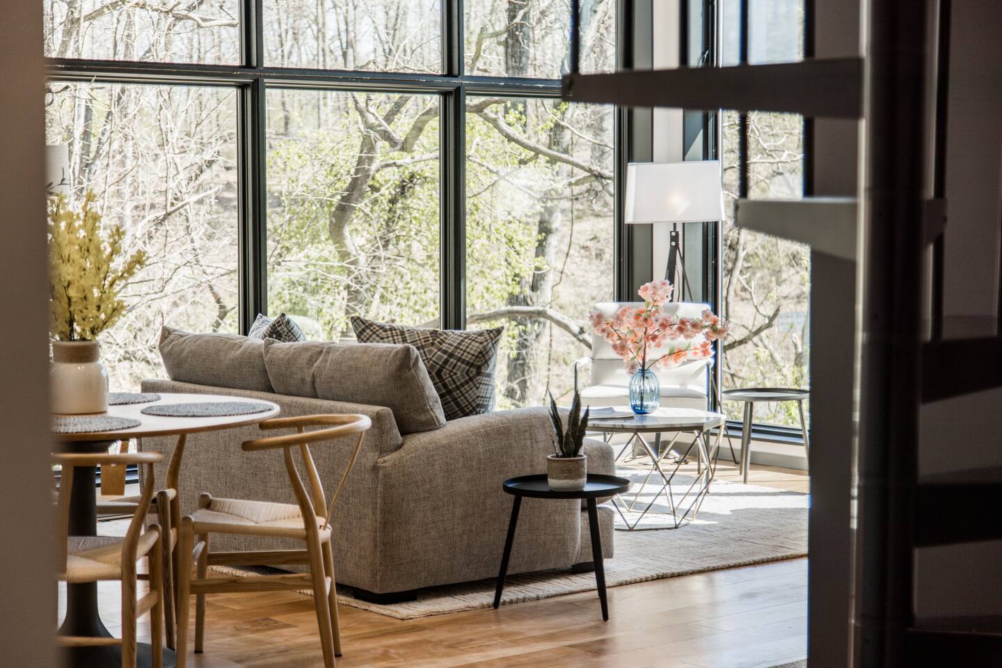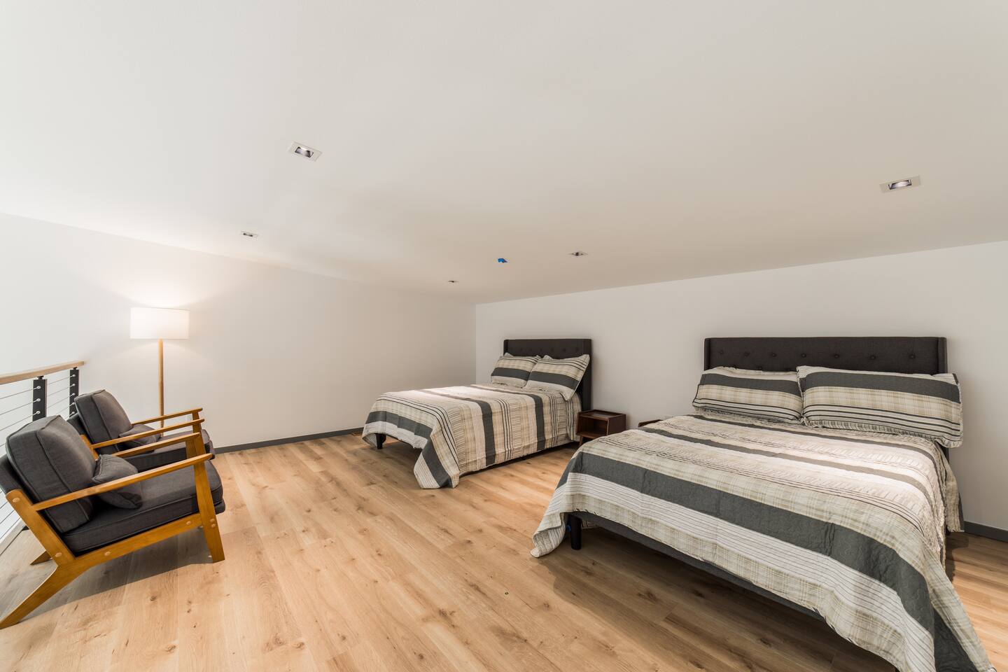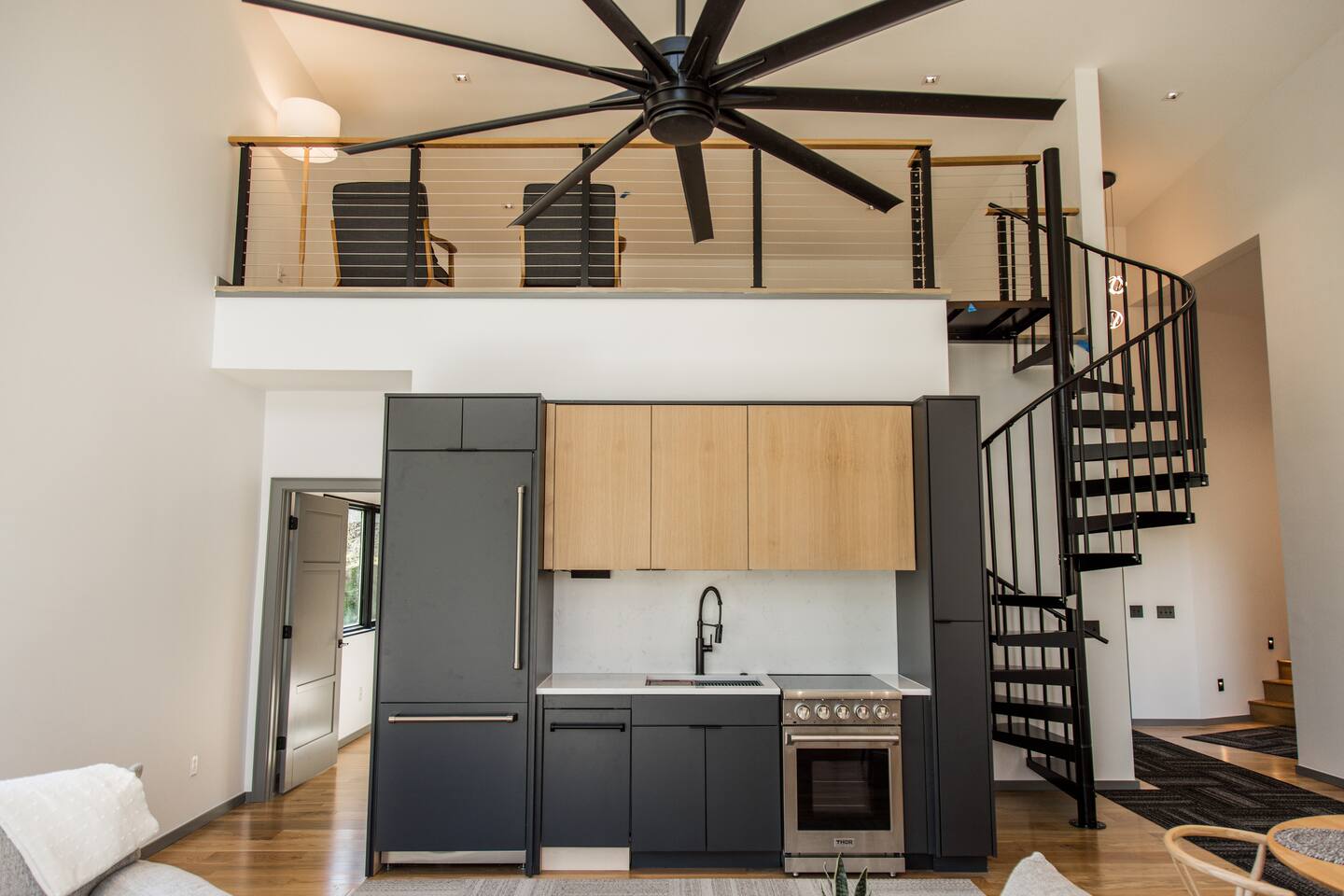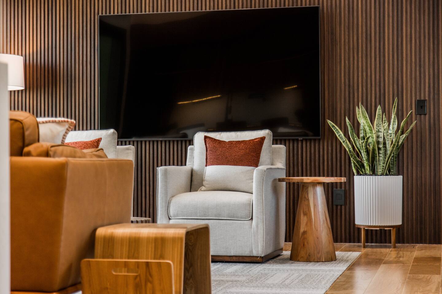 Welcome to Bike House 3—a brand-new, architect-designed 6-bedroom, 6.5-bathroom luxury home available starting August 1st. Located directly on the Slaughter Pen Mountain Bike Trails and just steps from Crystal Bridges Museum, this home offers the closest possible access to Bentonville’s most iconic outdoor and cultural landmarks. With a thoughtful three-part layout and large windows facing the park, trails, and museum, this home is designed to immerse you in nature while providing high-end comfort and privacy for groups, families, or corporate retreats. Main Level: The main house features a full kitchen with island seating, dining area, and living room with an 85" TV. The master suite includes a king bed, private patio access, large windows with park and trail views, and a second 85" TV. Patio doors lead to a covered porch with a hot tub, gas fire pit, grill, dining area, and seating—perfect for relaxing or watching mountain bikers go by. Second Floor: Upstairs includes two bedrooms with king beds, three full bathrooms, and a private living room ideal for separate gatherings. Expansive windows offer seasonal views of Crystal Bridges Museum, the flyover bike bridges, and surrounding trail network. Studio Wing: The Studio Wing is a private retreat with 20-foot ceiling, 18-foot-tall windows, and modern finishes throughout. It includes 2 bedrooms with king beds, loft with 2 twin beds, 2 full bathrooms, a private kitchen, living room, game room, and a spacious basement-level lounge. Ideal for a second family or group, the Studio Wing offers privacy while staying fully connected to the main house. Garage: The home features an oversized 2-car garage with plenty of space for larger vehicles, plus a unique 1-car garage with a glass door that opens onto the deck and park. This flexible space is perfect for entertaining, storing bikes, or setting up games and gatherings with a view. Orientation & Views: The home is positioned to capture views of Boo Boo Trail, the Razorback Greenway, and the north end of Crystal Bridges. Whether inside or outside, you'll enjoy a front-row seat to Bentonville’s trail system, natural beauty, and vibrant biking culture.