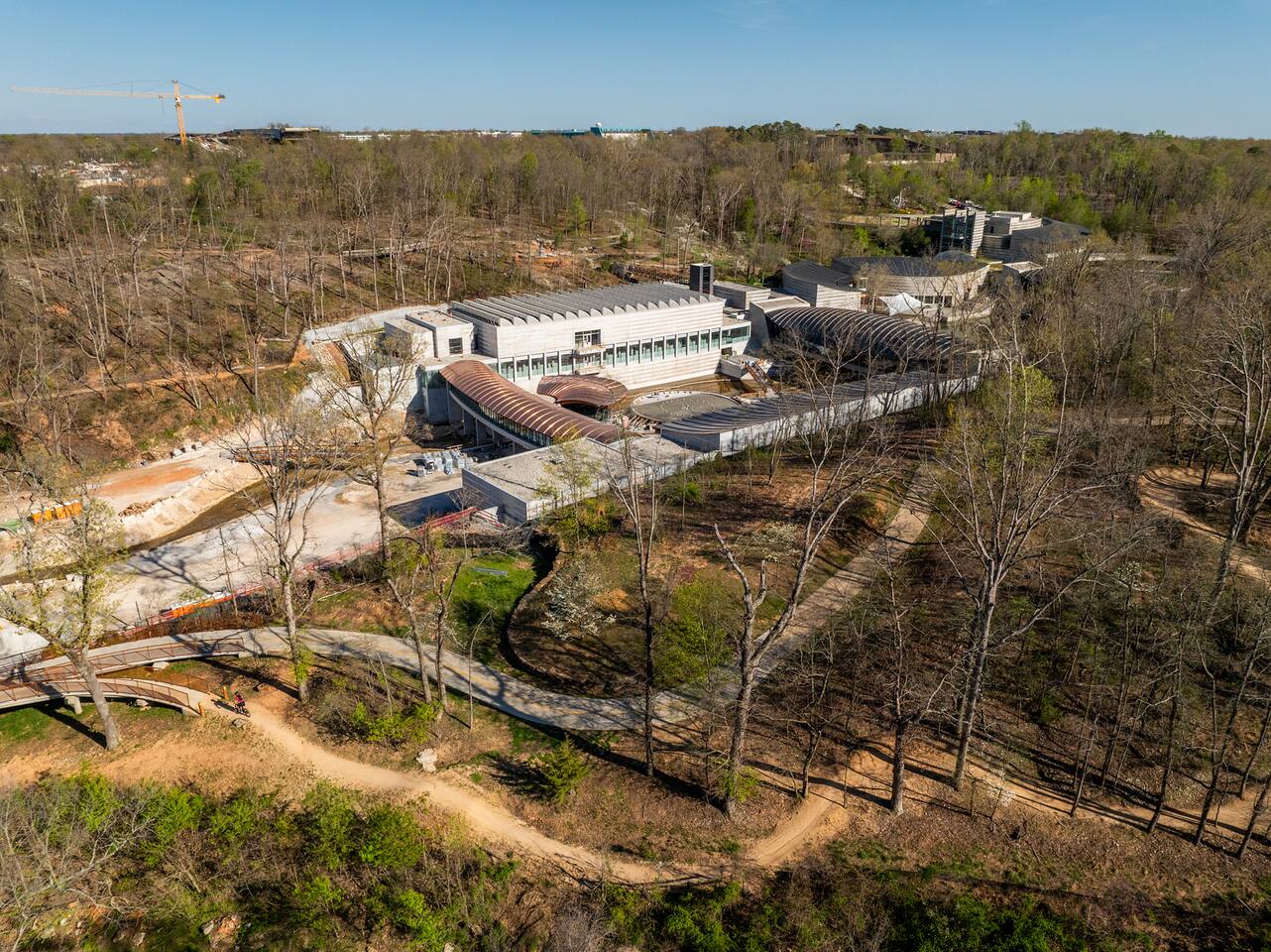 New 5BR + Loft / 6.5BA architectural retreat facing directly onto Slaughter Pen Trails and Park—steps to Crystal Bridges North Entry. This home blends modern design with nature and features three distinct living zones: a main level with chef’s kitchen and master suite, a second floor with two bedrooms and lounge, and a dramatic studio wing with 20’ ceilings, loft, and full kitchen. Walls of glass, porch to watch riders, private hot tub, fire pit, and seamless indoor–outdoor living.
